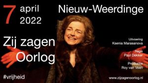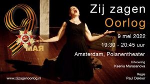 Zij zagen oorlog De dag van de Overwinning: 9 mei 2022 15 november 2021 Tijdens de viering van de ‘Dag van de Overwinning’ speel ik in 2022 “Zij zagen Oorlog” in het prachtige Polanentheater in Amsterdam! Het is de stad waar ik kennismaakte met Nederland, waar ik onder Thom Harinck trainde in Chakuriki Gym, terwijl ik werkte in Oud-Zuid en waar ik later toneelles kreeg van oa. Hetty Heyting. Lees verder »