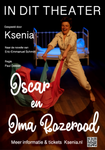 Ksenia - algemeen Theaterstuk Oscar en Oma Rozerood Over leven en liefhebben 07 juni 2022 Oscar en Oma Rozerood is een filosofisch sprookje. De toneelvoorstelling duurt inclusief pauze ruim 135 minuten. Lees verder »